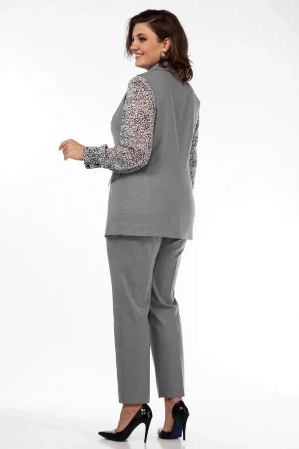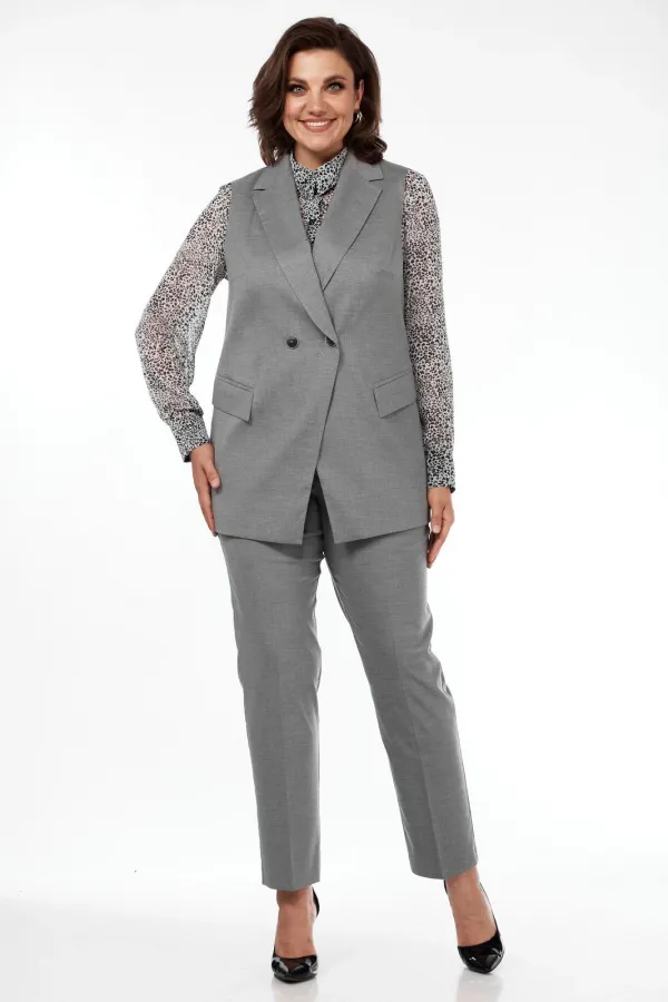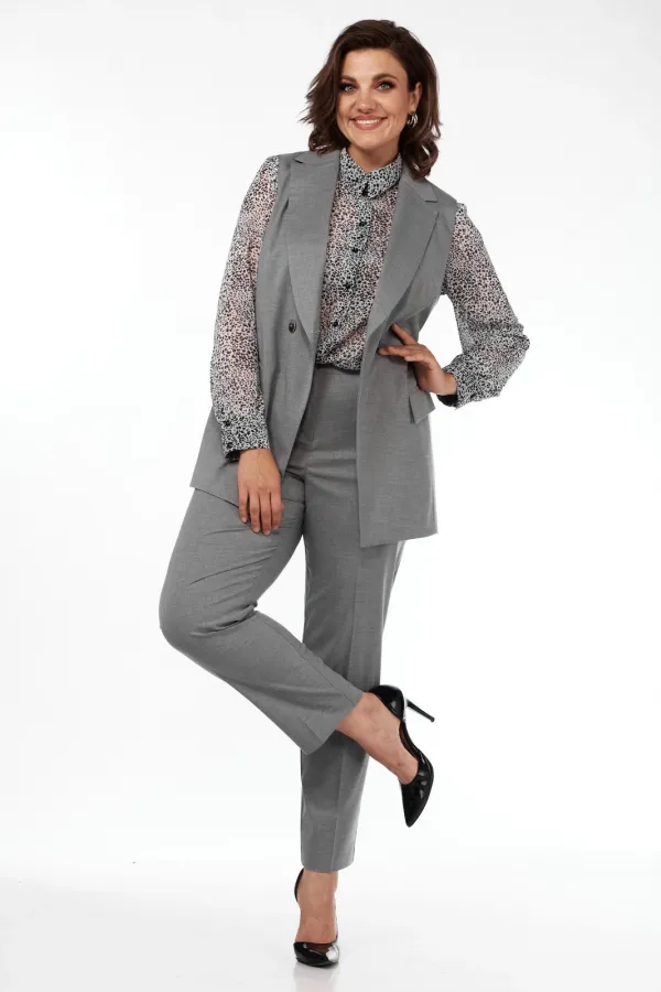 Комплект: жилет, блузка, брюки.Жилет на подкладке. Силуэт полуприлегающий. Воротник пиджачный. Край борта фигурный. Застёжка на 2 петли и пуговицы. На переде 2 функциональных прорезных кармана в рамку с клапаном. Спинка ... Читать далее...