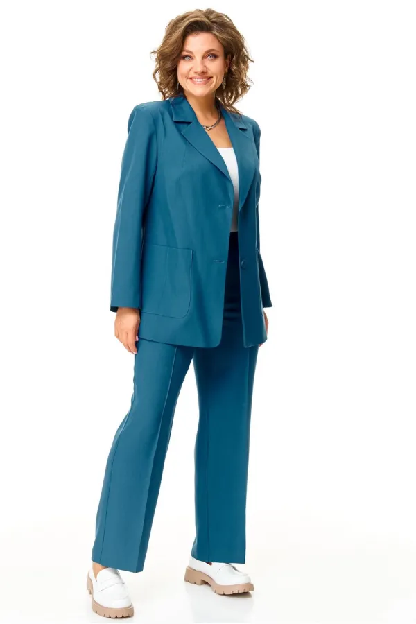 Костюм: жакет, брюки.Выполнен из текстильной костюмной ткани.Жакет частично на подкладке. Силуэт прямой. Покрой рукава втачной двушовный, шлица в локтевом шве. Воротник пиджачный. По переду большие накладные карманы с то... Читать далее...
