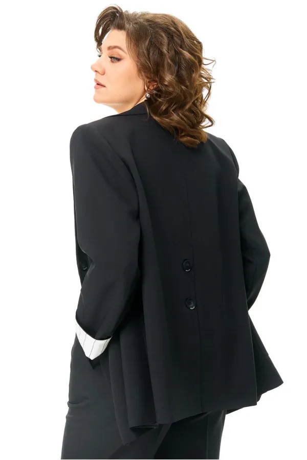 Спинка прямая, в среднем шве высокая шлица декорирована 2-мя пуговицами.