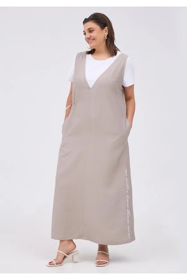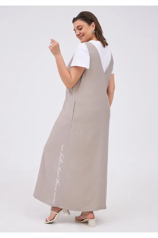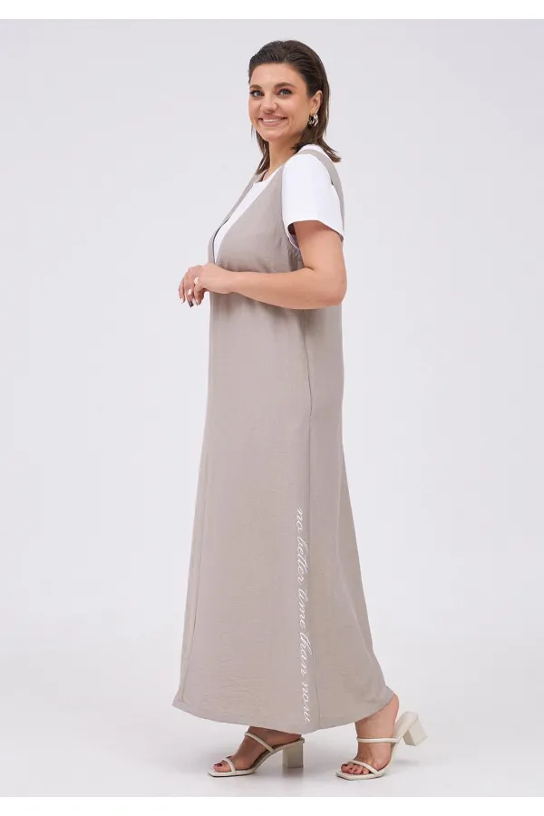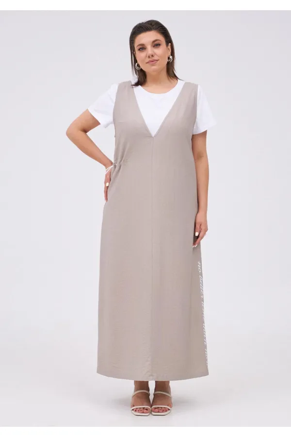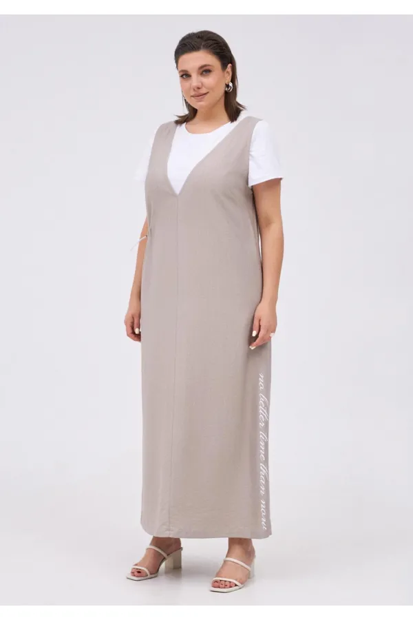 Комплект из 2 предметов: сарафан и футболка. Сарафан длины макси с углубленной линией декольте v-образной формы. По талии справа декоративная кулиса со шнуром и фиксатором. Вдоль бокового шва слева контрастный принт. Баз... Читать далее...