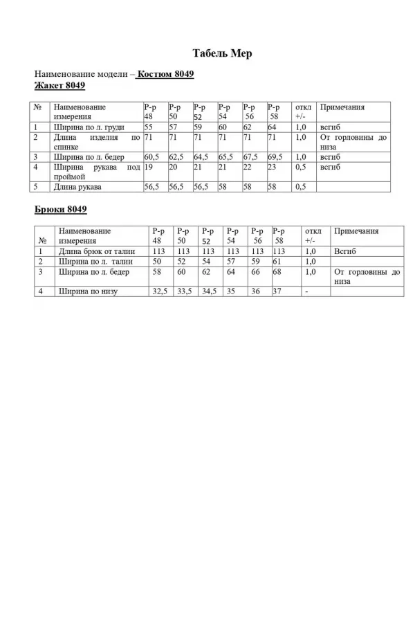 Костюм состоящий из жакета и брюк. Жакет прямого силуэта со спущенной линией плеча и двубортной застёжкой. Все края жакета с сырыми срезами, которые отстрочены контрастной ниткой. Спереди два кармана с клапанами. Брюки прямые от бедра на резинке по талии с карманами по бокам.