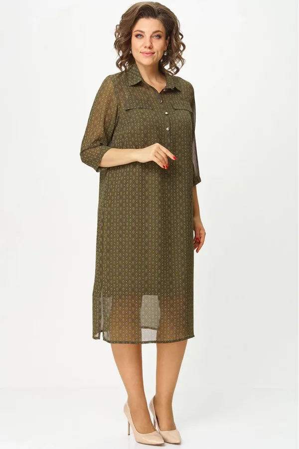 Женский комплект 2-х предметный, состоит из туники и платья. Платье прямого силуэта, с круглым вырезом горловины, обработанного стояче-отложным воротником с отрезной стойкой. Перед с нагрудными вытачками, застежкой-планк... Читать далее...