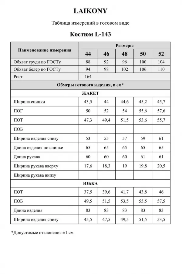 | Ткань | жакет: полиэстер 62% вискоза 35% эластан 3% юбка: полиэстер 65% вискоза 32% спандекс 3% |