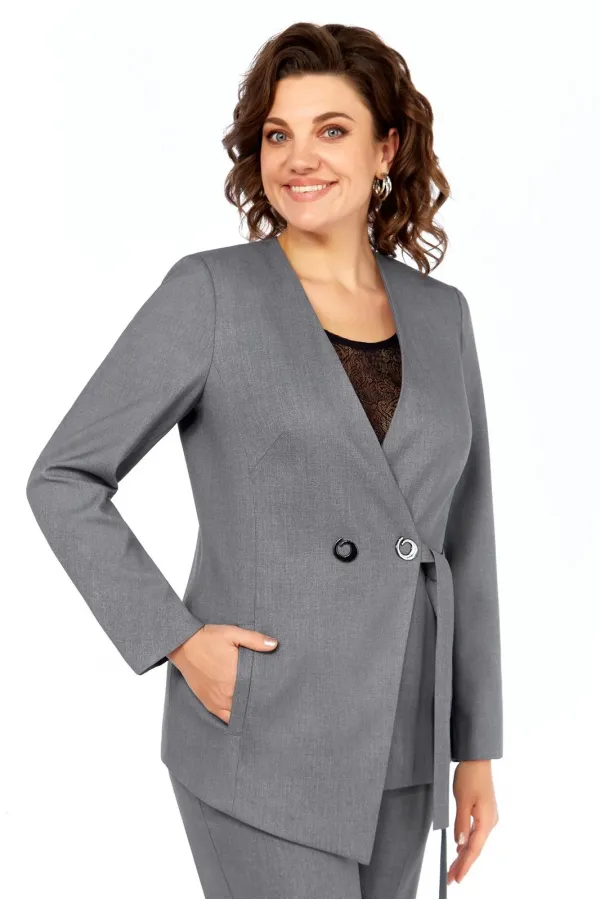 Асимметричный жакет оригинального кроя и классические брюки.