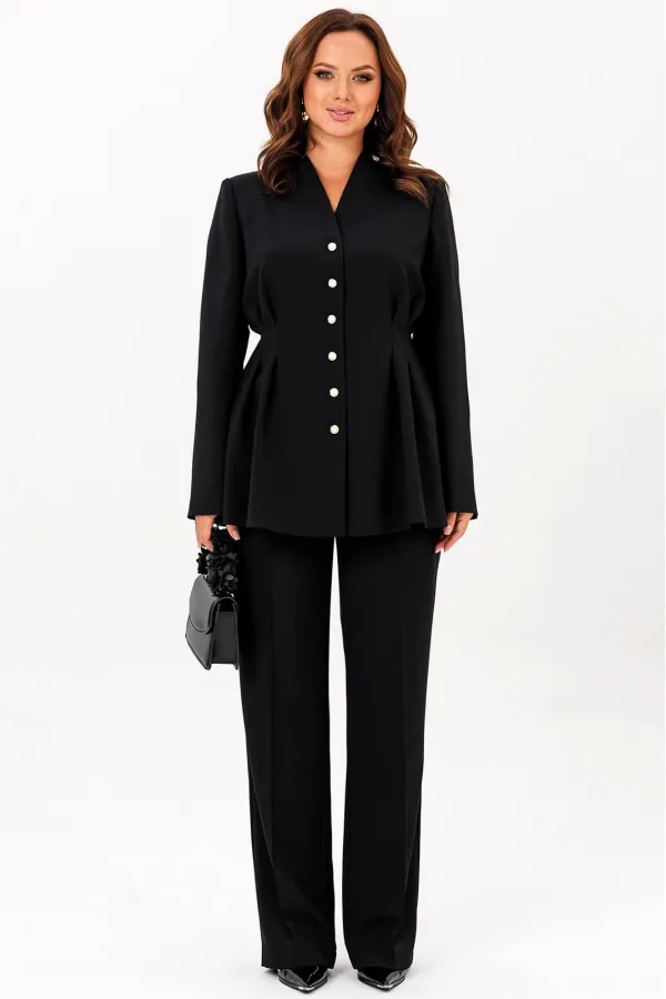Комплект женский 2-х предметный: жакет и брюки.Жакет выполнен из костюмной ткани. Жакет Х-образного силуэта, длиной чутьниже линии бёдер. Спереди центральная застежка на петли и пуговицы. Попереду и спинке в области тали... Читать далее...