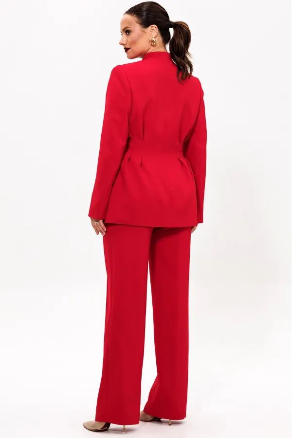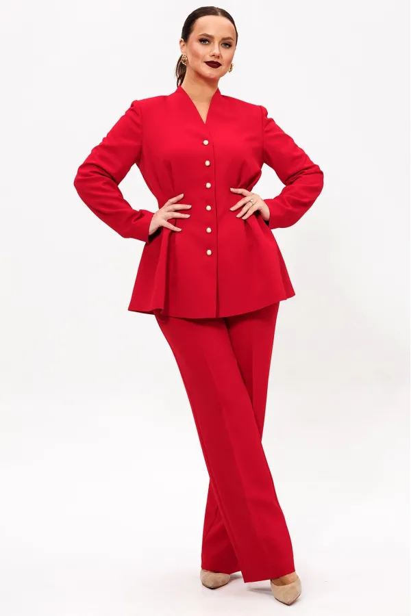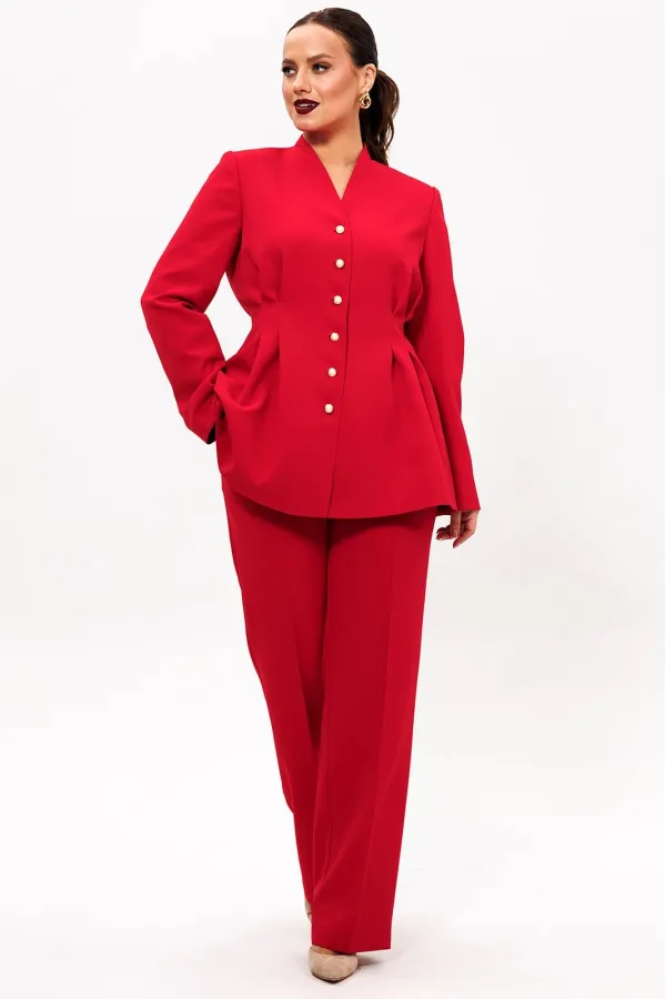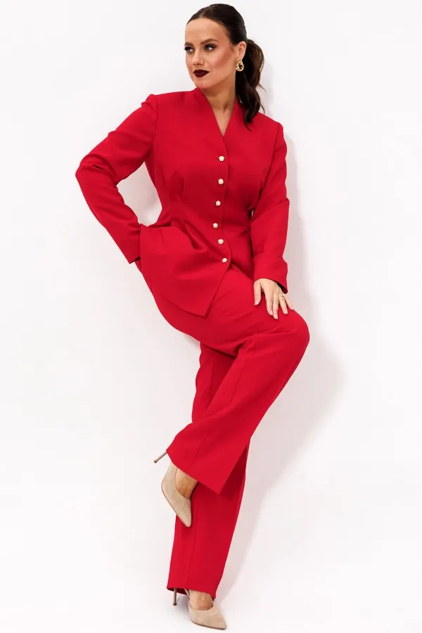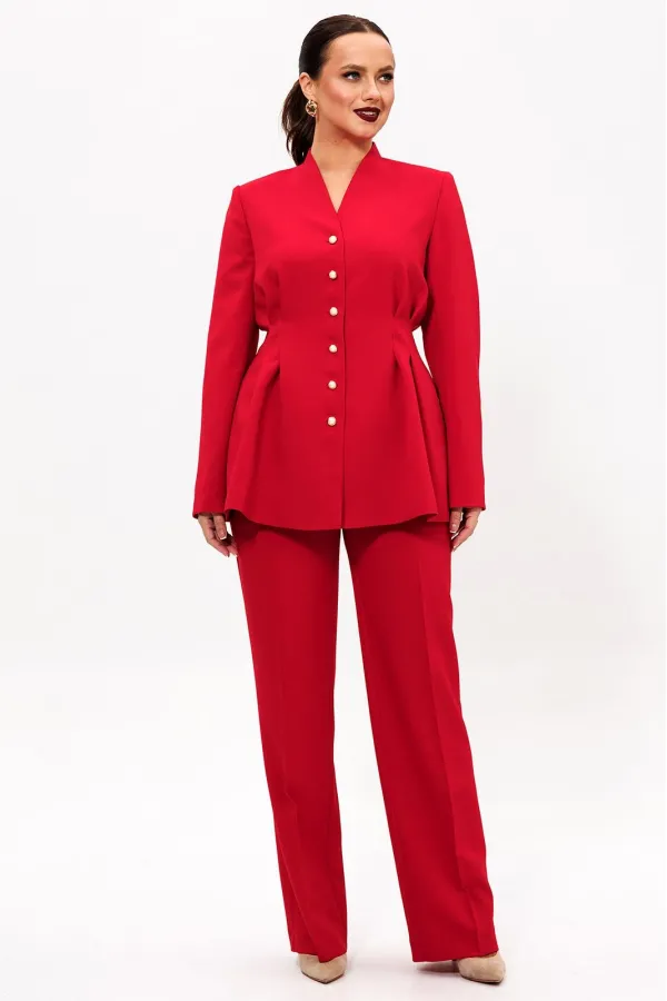 Комплект женский 2-х предметный: жакет и брюки.Жакет выполнен из костюмной ткани. Жакет Х-образного силуэта, длиной чутьниже линии бёдер. Спереди центральная застежка на петли и пуговицы. Попереду и спинке в области тали... Читать далее...