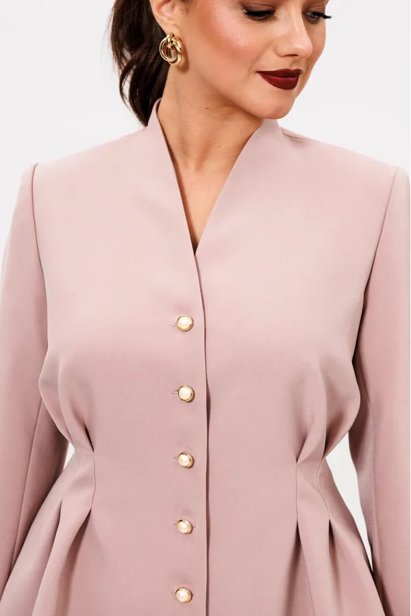Воротник - цельнокроеная стойка. Рукав втачной двух шовный. Жакет на