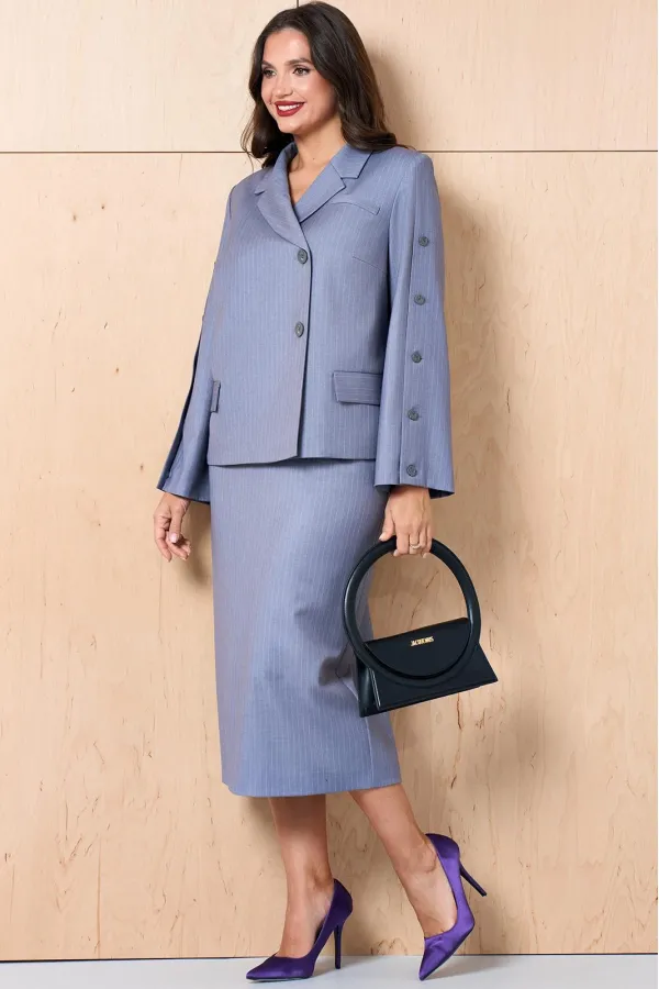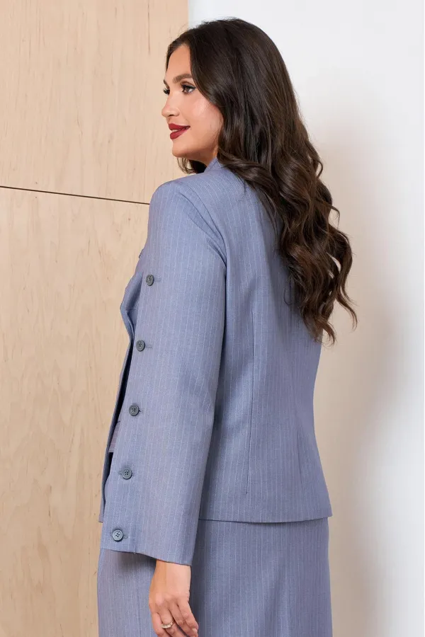 Костюм юбочныйЖакет со стояче-отложным воротником пиджачного типа и смещённой застёжкой на петли и пуговицы. Перед с карманами с клапанами в нижней части. Спинка со средним швом и талиевыми вытачками. Рукава втачные с пу... Читать далее...