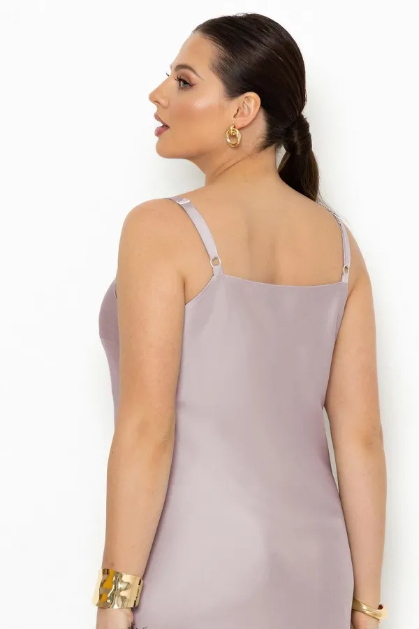 Платье с фигурным вырезом горловины и на бретелях (бретели регулируемые).