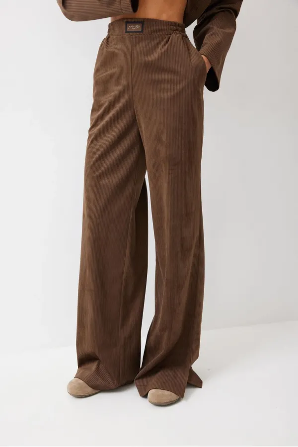 Брюки прямого силуэта из костюмной ткани. По верху брюк притачной пояс на резинке с декоративной нашивкой. На передних половинках обработаны карманы. Обращаем ваше внимание, что фурнитура может отличаться от фото.