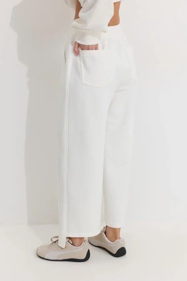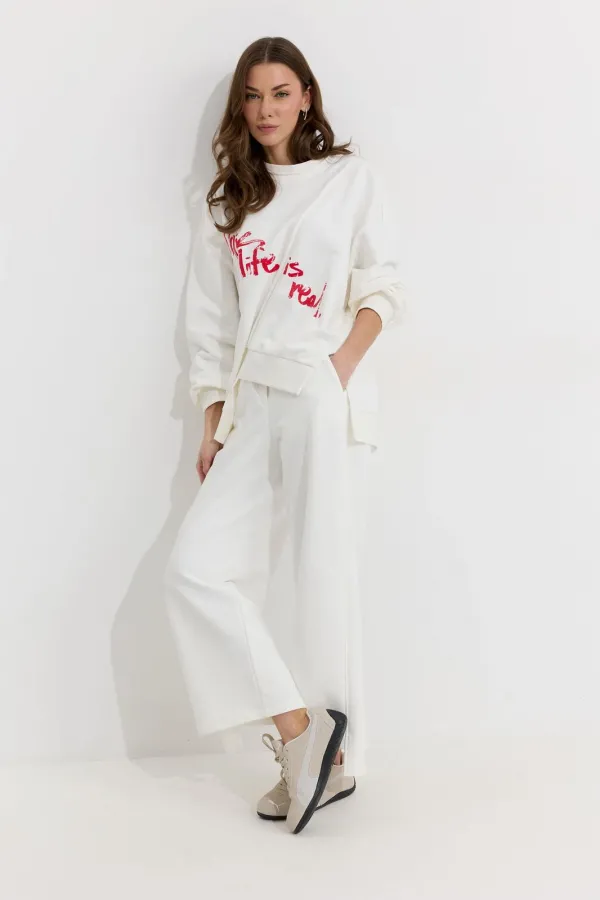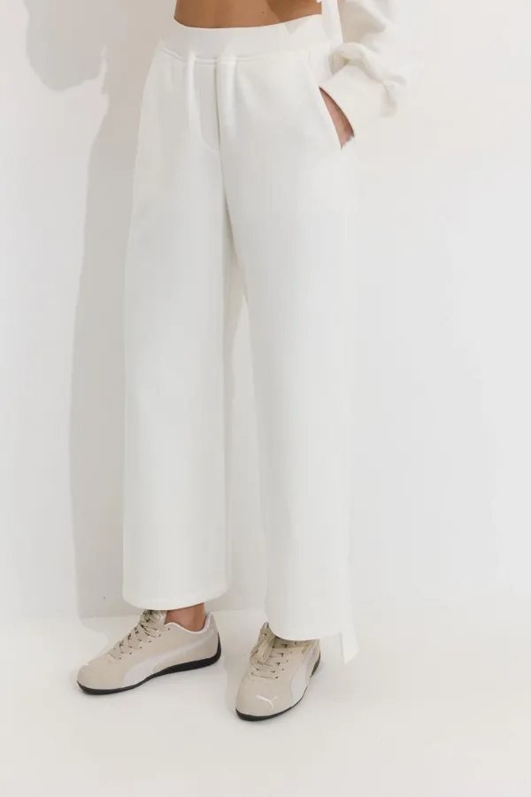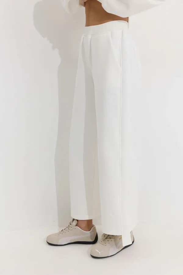 Брюки прямого силуэта из трикотажного полотна. По верху брюк притачной пояс. По боковым швам лампасы. По задним половинкам брюк карманы. Обращаем ваше внимание, что фурнитура может отличаться от фото.