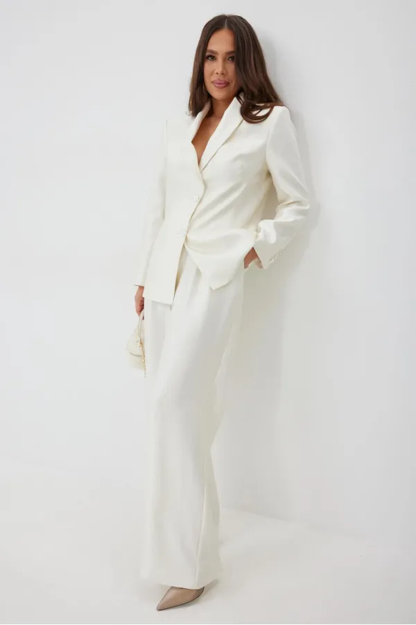 Элегантный и безумно красивый костюм из жакета и брюк. Выполнен из красивой гладкой костюмной ткани с легким жемчужным отблеском. Жакет прямого свободного кроя с красивыми рельефами, на подкладке, с центральной застежкой... Читать далее...