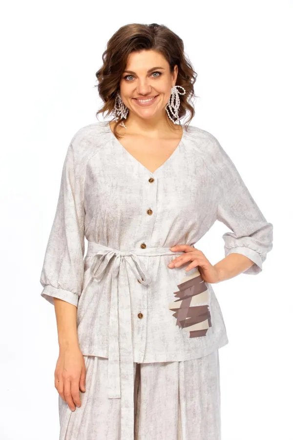 омплект женский 2-х предметный, состоящий из блузки и юбки-брюк.Блузка женская прямого силуэта, с V- образным вырезом горловины. Застежка центральная на петли-пуговицы, рукав реглан 3/4, на манжете. С левой стороны на по... Читать далее...