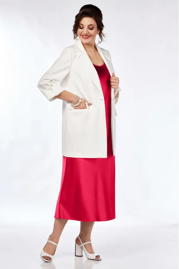Комплект женский 2-х предметный, состоящий из платья-комбинации и жакета. Платье полуприлегающего силуэта, из плотной атласной ткани. Длина миди, с нагрудными вытачками из боковых швов и с округлым вырезом горловины по п... Читать далее...