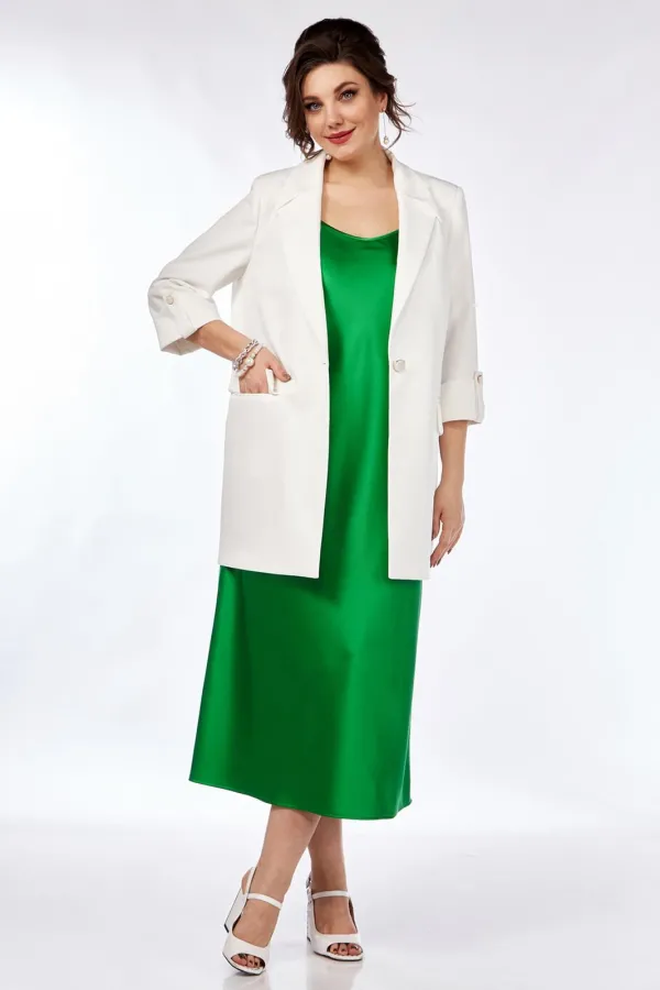 Комплект женский 2-х предметный, состоящий из платья-комбинации и жакета. Платье полуприлегающего силуэта, из плотной атласной ткани. Длина миди, с нагрудными вытачками из боковых швов и с округлым вырезом горловины по п... Читать далее...