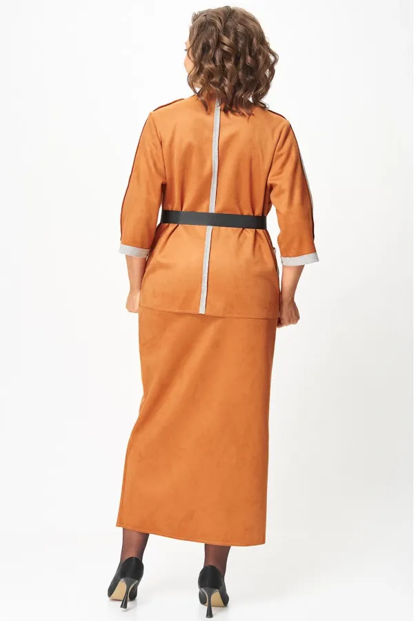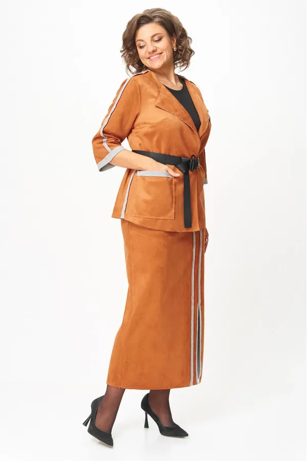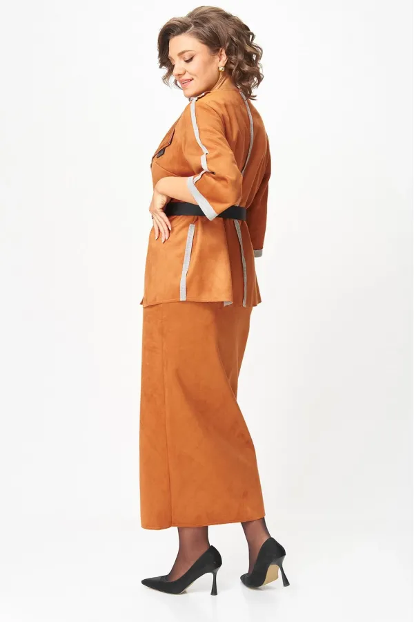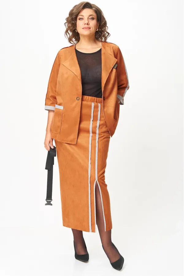 Длина жакета по спинке — 67 см, длина рукава — 42 см. Длина юбки по боковому шву — 93 см.