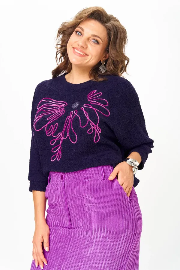 Пурпурный джемпер украшен изящной вышивкой, придавая образу оригинальность и шарм. Его рукава реглан «летучая мышь» создают ощущение легкости и современности, а яркий цвет подчеркнет вашу индивидуальность и добавит яркости в любой образ.
