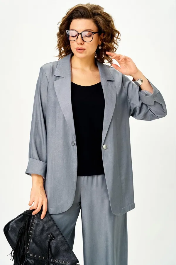 • Жакет формирует пропорции, застёжка на 1 пуговицу — тренд