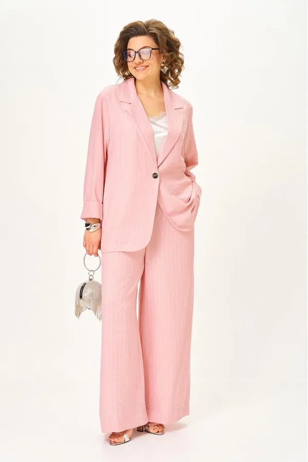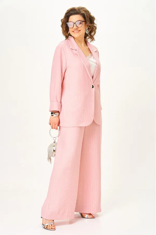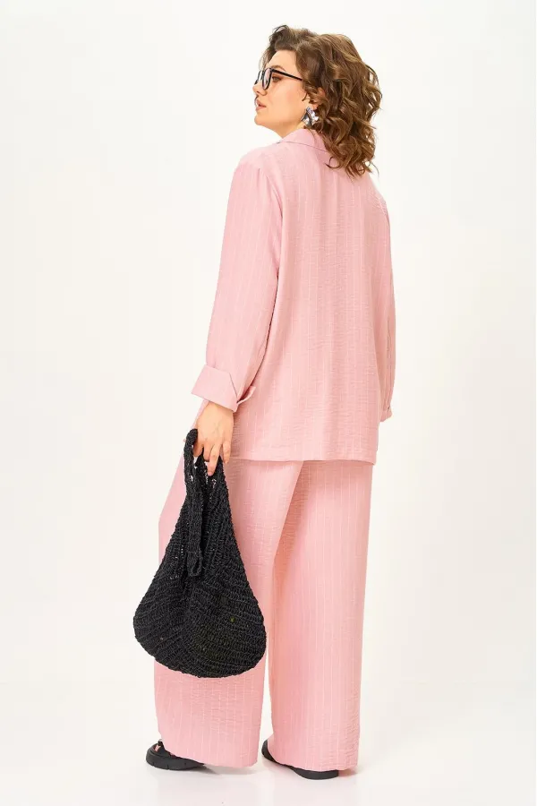 Ткань мягко струится, при этом держит форму и красиво формирует силуэт. Благодаря лёгкости материала костюм комфортен в течение дня и остаётся актуальным в разных сезонах.