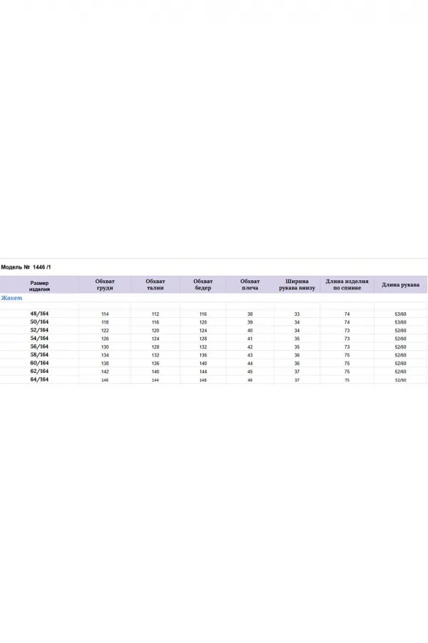 Длина жакета по спинке — 73 см+/- 1 см, длина рукава — 52/60 +/- 1 см, длина брюк по боковому шву — 108 см +/- 1 см, длина брюк по шаговому шву — 76 см +/- 1 см. Изделие подойдет на рост 164-170 см.