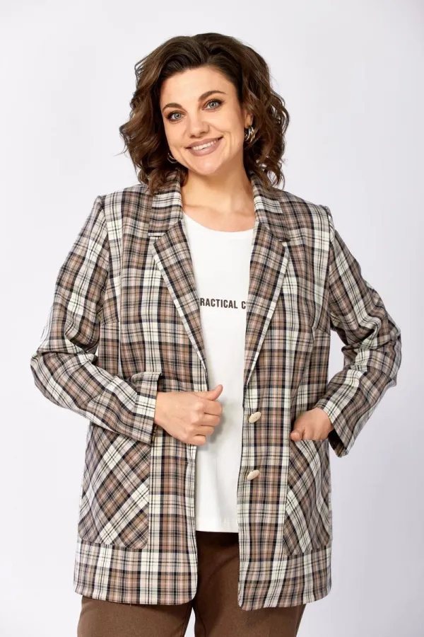 Комплект женский, состоящий из жакета, футболки и брюк. Жакет свободного силуэта, спереди на подкладке. Воротник пиджачного типа, застёжка на петли-пуговицы, по переду накладные карманы. Футболка свободного силуэта, с ру... Читать далее...