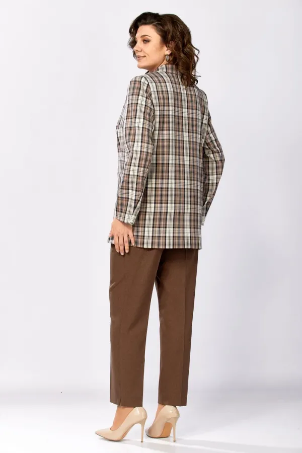 Длина по спинке жакета - 72 см, длина рукава - 63 см. Длина по спинке футболки - 58 см, длина рукава - 22см. Длина брюк по боковому шву - 102 см