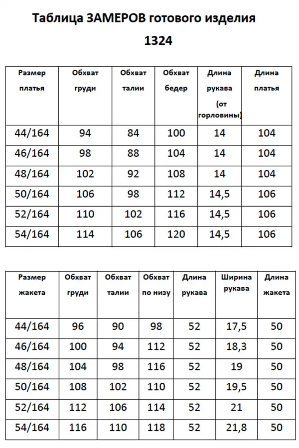 | Ткань | Платье - Вискоза 51% П/Э 46% лайкра 3%. Жакет - полиэстер 62% вискоза 34% эластан 4 % |