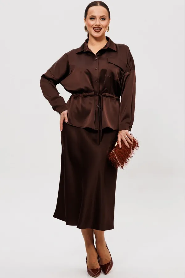 Нарядный юбочный костюм, выполненный из струящегося шелка «Армани» (тянется).
