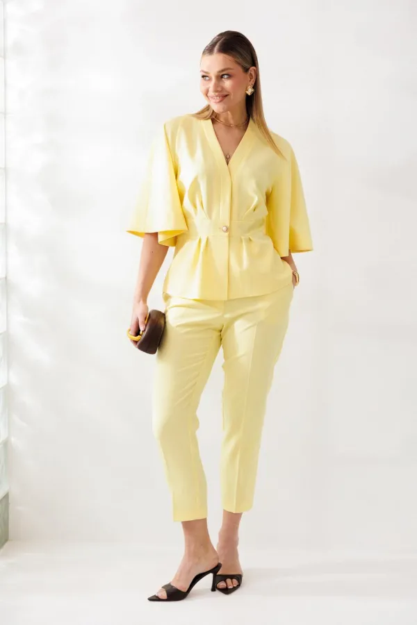 Костюм женский, состоящий из жакета и брюк, выполнен из костюмной ткани (чуть тянется).