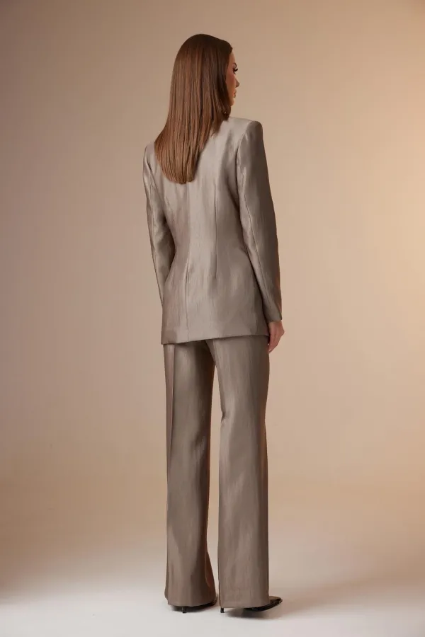 Жакет брюки – вискоза 46% полиамид 40% полиэстер 14%; Топ – полиэстер 77% вискоза 20% этастан 3%