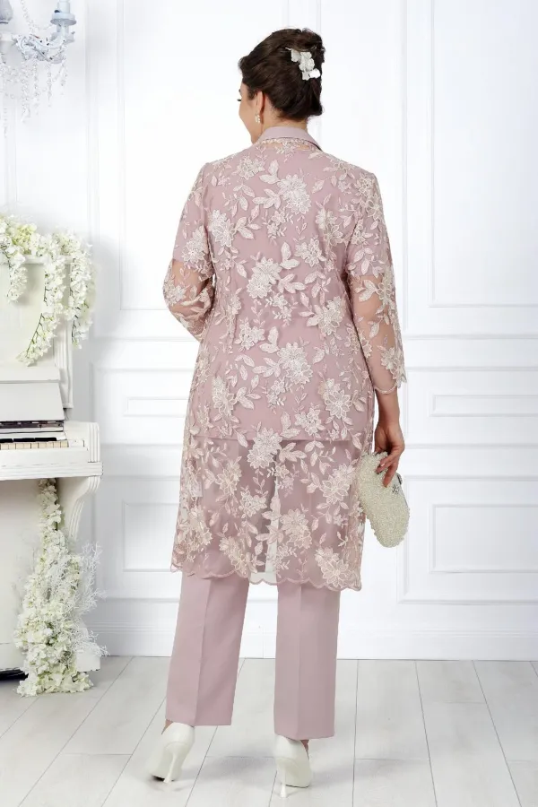 Представляем вашему вниманию изысканный вечерний брючный костюм, созданный для женщин с великолепными формами. Кардиган этого костюма играет ключевую роль в создании правильного силуэта для женщин больших размеров. Мягкие линии и длина кардигана подчеркивают достоинства фигуры, при этом даря ощущение уверенности и гармонии. Эта длина визуально вытягивает силуэт, создавая стройный и изящный образ. Этот вечерний брючный костюм станет прекрасным воплощением вашего стиля и изысканности в праздничных событиях.