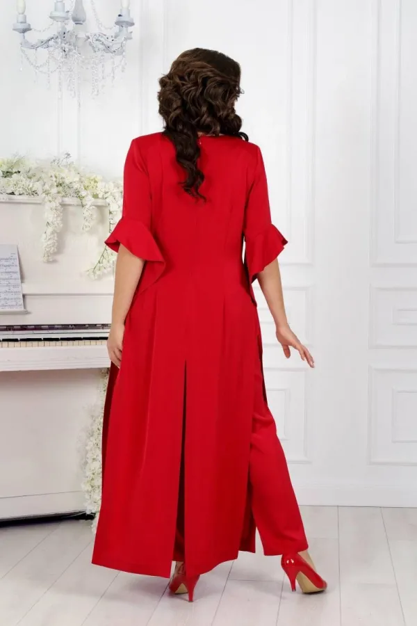 Представляем вашему вниманию вечерний брючный костюм, созданный с особым вниманием к стилю и комфорту женщин больших размеров. Этот изысканный комплект выполнен из высококачественного сатина, придавая вашему образу нежность и элегантность. Длинная туника этого костюма не только подчеркивает его изысканный характер, но и служит важным элементом создания правильного силуэта для женщин с великолепными формами. Ее линии и длина прекрасно балансируют фигуру, придавая ей гармоничность и элегантность.