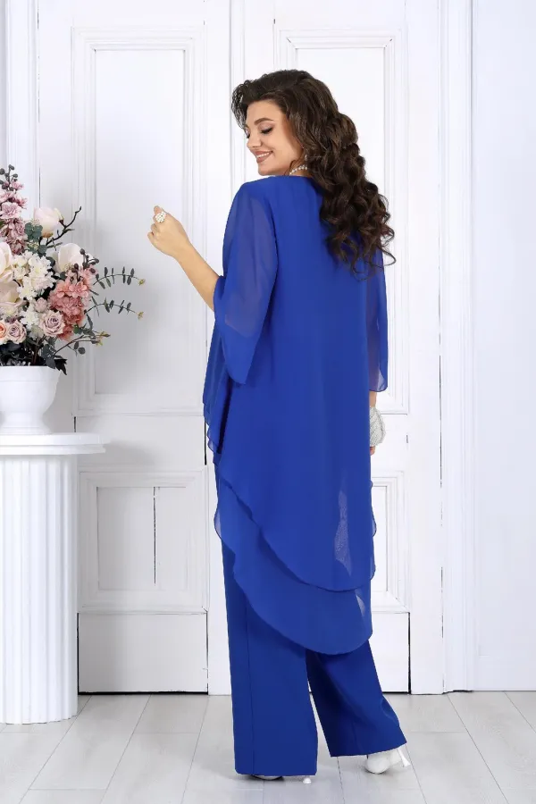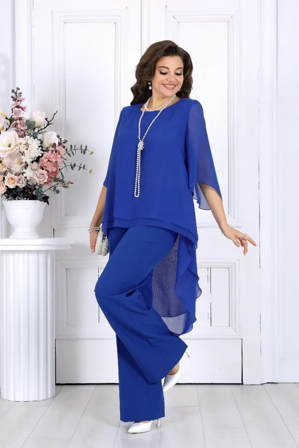 6063 Комплект брючный Элегантный брючный костюм – идеальный выбор для вечернего выхода, торжества или особого случая. Легкая шифоновая туника с асимметричным кроем и струящимися рукавами добавляет образу воздушности и ут... Читать далее...