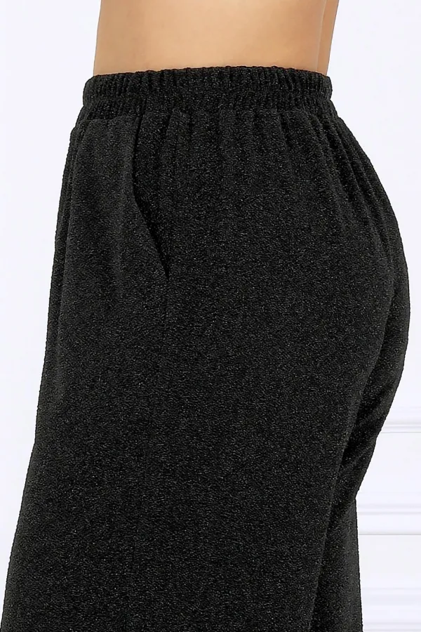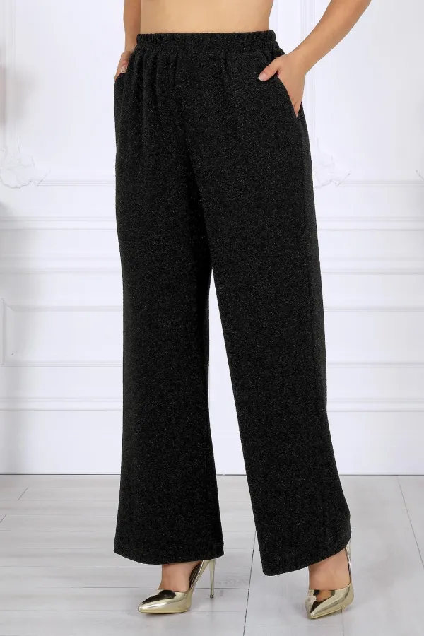 Брюки прямого силуэта с комфортной посадкой — символ утончённой простоты и свободы. Эластичный пояс обеспечивает удобство, а мерцающая фактура ткани делает их достойным элементом вечернего гардероба.