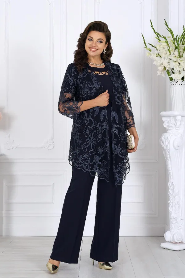 Праздничный брючный костюм-тройка для полных женщин — элегантный выбор для особых случаев и стильных деловых образов.