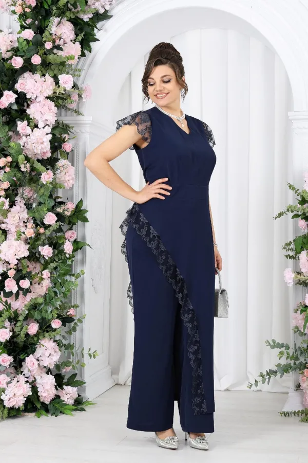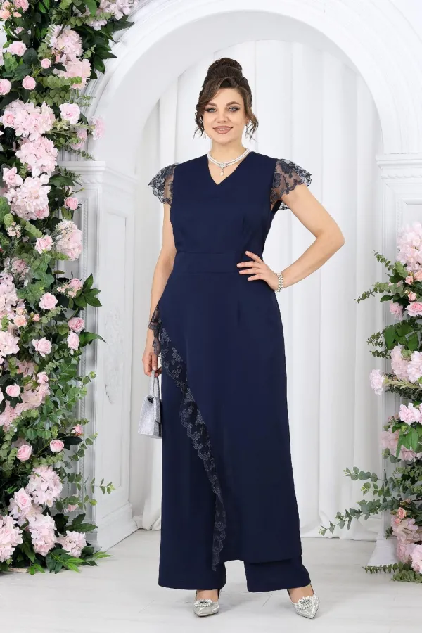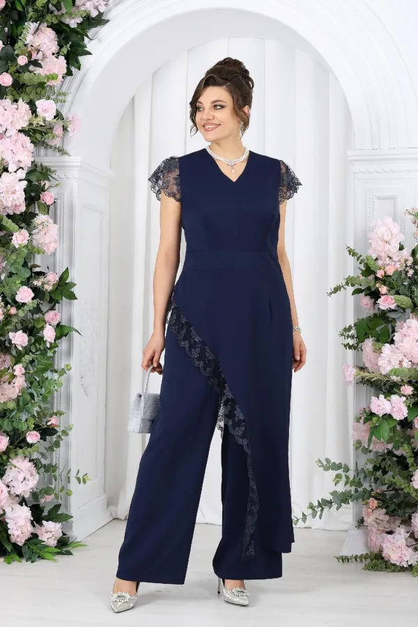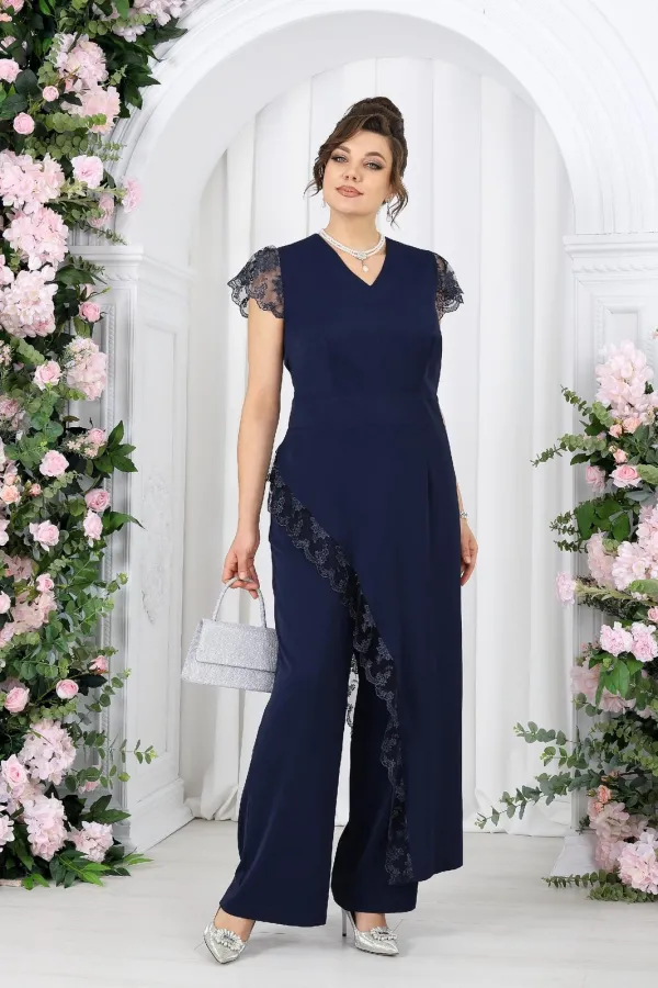 Этот костюм создан для моментов, когда хочется выглядеть нарядно и чувствовать себя уверенно. Легкая асимметрия, утончённое кружево и мягкие линии силуэта создают гармоничный, женственный образ с характером.