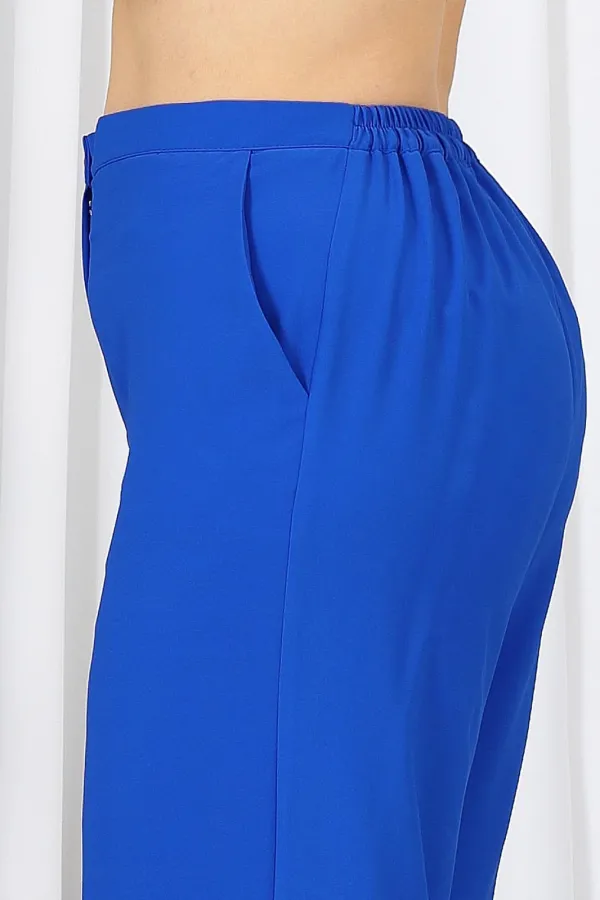 Брюки дополняют комплект, создавая вытянутый, стройный силуэт и делая образ завершенным и сбалансированным.