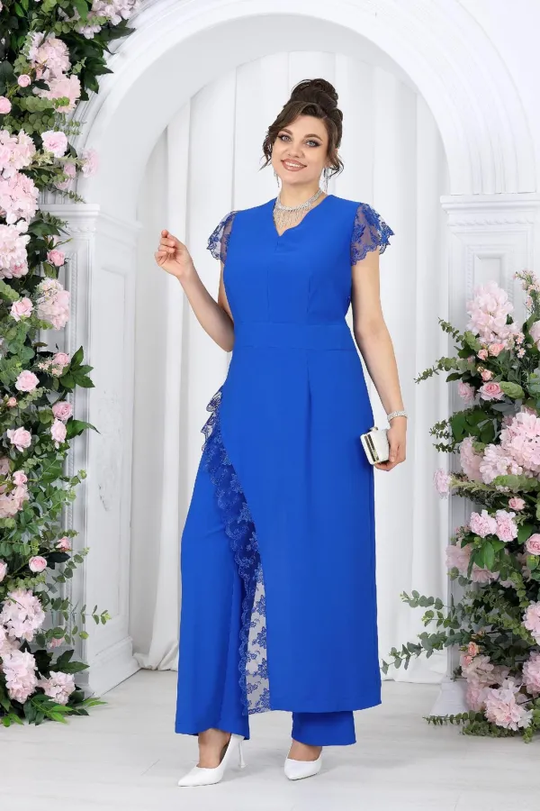 Этот костюм создан для моментов, когда хочется выглядеть нарядно и чувствовать себя уверенно. Легкая асимметрия, утончённое кружево и мягкие линии силуэта создают гармоничный, женственный образ с характером.