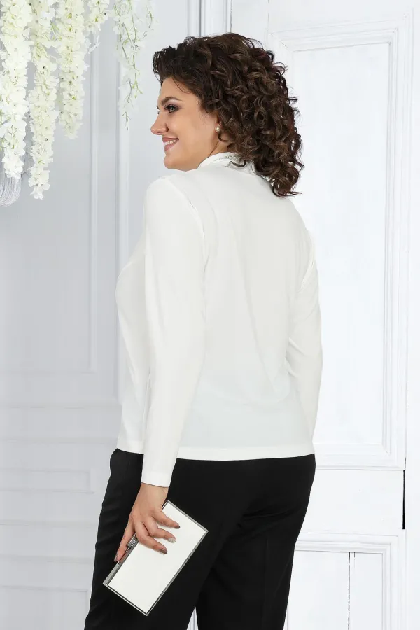 Джемпер полуприлегающего силуэта, длиной по центру спинки 58 см, с воротником стойкой. Перед с нагрудными вытачками, выходящими из пройм. Рукава втачные, одношовные. Длина рукава 60 см.