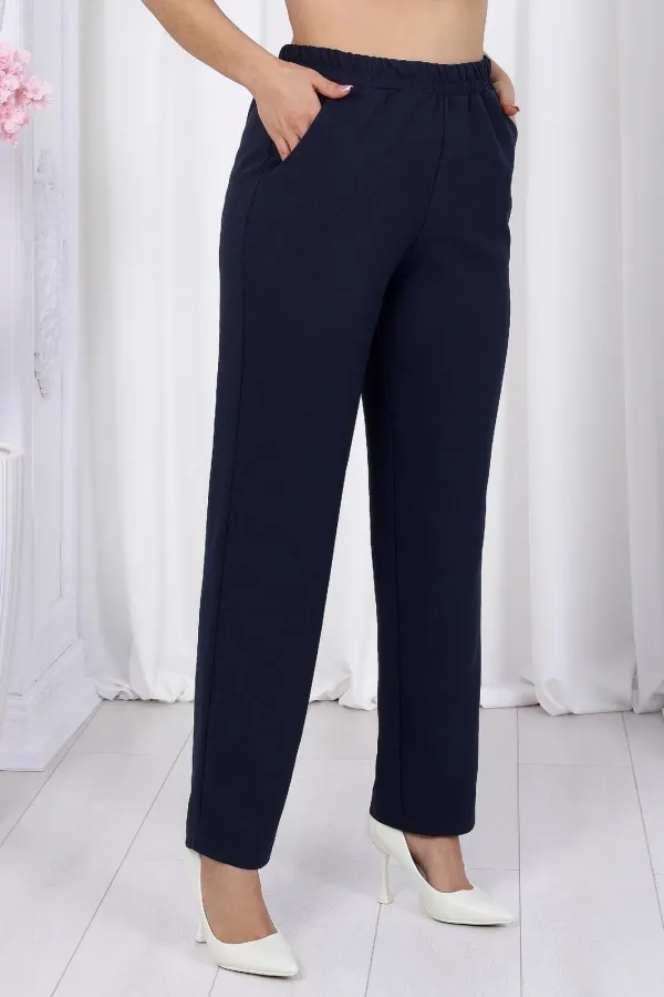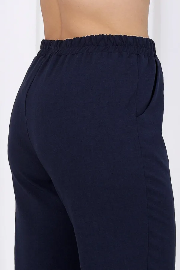 Брюки классические длинные, прямого силуэта, с посадкой на талии, выполнены из ткани «лен-вишер». Модель без застёжки, на притачном поясе, с эластичной лентой внутри. Передние половинки брюк с боковыми наклонными карманами. Длина брюк по боковому (с поясом)-103 см (46-54 р-р), 104,5 см (56-60 р-р), 106 см (62-66 р-р).
