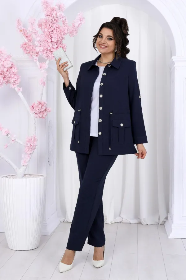 7492 Комплект брючный Этот костюм - идеальное сочетание стиля, комфорта и практичности. Он подойдет как для деловых встреч, так и для повседневного использования, дополняя ваш образ уверенностью и элегантностью. Если вам... Читать далее...