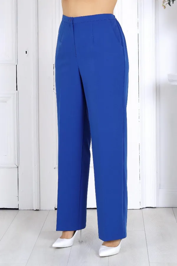 Брюки классические, длинные, с посадкой на талии, выполнены из костюмно- плательной ткани. Модель со стрелками. Передние и задние половинки брюк с талиевыми вытачками, направленными от пояса вниз. Спереди обработаны наклонные боковые карманы и центральная застёжка на тесьму-«молнию». Притачной пояс застегивается на 1 петлю и 1 пуговицу; для лучшего прилегания по линии талии в притачном поясе предусмотрена эластичная лента, вставленная по спинке. Длина брюк по боковому (с поясом) – 107 см.