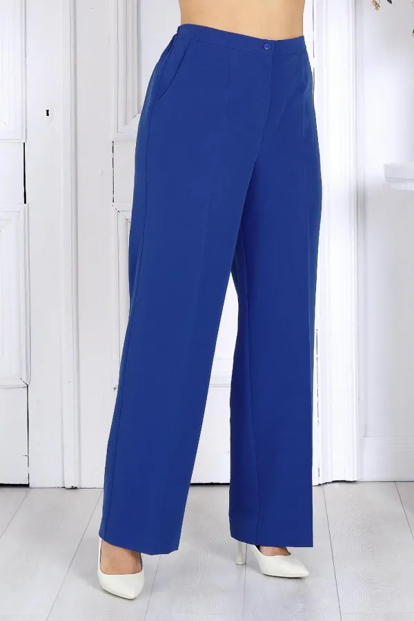 Брюки классические, длинные, с посадкой на талии, выполнены из костюмно- плательной ткани. Модель со стрелками. Передние и задние половинки брюк с талиевыми вытачками, направленными от пояса вниз. Спереди обработаны наклонные боковые карманы и центральная застёжка на тесьму-«молнию». Притачной пояс застегивается на 1 петлю и 1 пуговицу; для лучшего прилегания по линии талии в притачном поясе предусмотрена эластичная лента, вставленная по спинке. Длина брюк по боковому (с поясом) – 107 см.