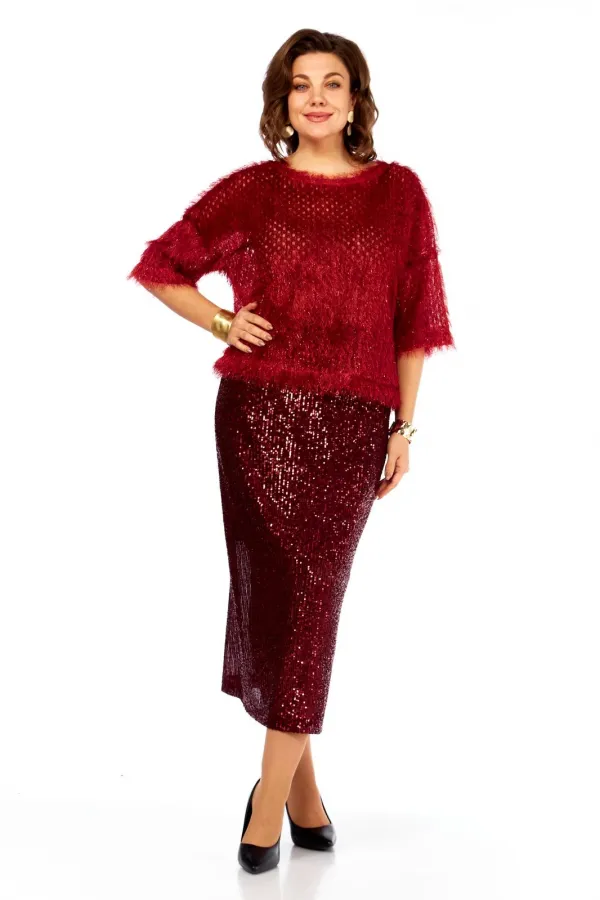 Шикарный комплект, сочетающий мягкую бахрому и паетки -must-have сезона. Блузка нарядная прямого силуэта, из интересной ткани с бахромой. Вырез горловины округлой формы, со спущеныным рукавом длиной 3/4. Юбка длиной миди... Читать далее...