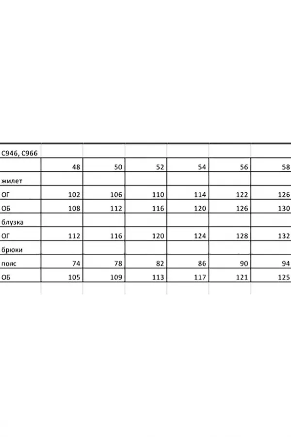| Ткань | жилетбрюки П/Э 64% вискоза 33% спандекс 3% блузка П/Э 65% вискоза 32% спандекс 3% |