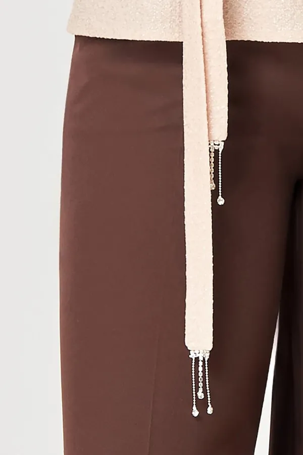 К комплекту прилагается пояс из основной ткани, к концам которого пришита отделочная тесьма со стразами.