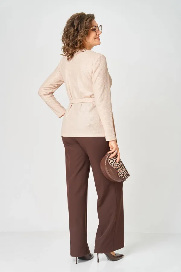 Комплект женский, состоящий из блузы трикотажного полотна с блеском и брюк из костюмной ткани.