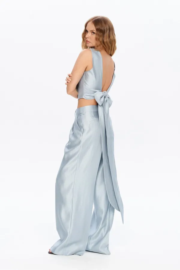 Костюм-двойка из топа с открытой спинкой и брюк-палаццо.