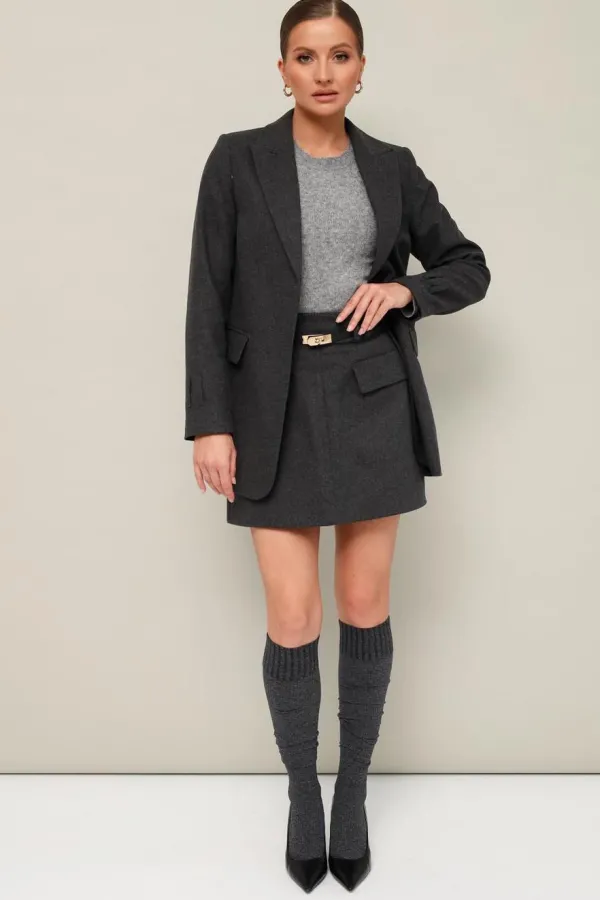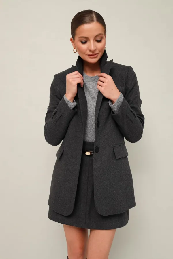 Стильный 2-предметный комплект, состоящий из жакета и юбки-шорт. Комплект выполнен из качественной костюмной ткани. Жакет