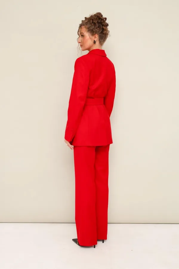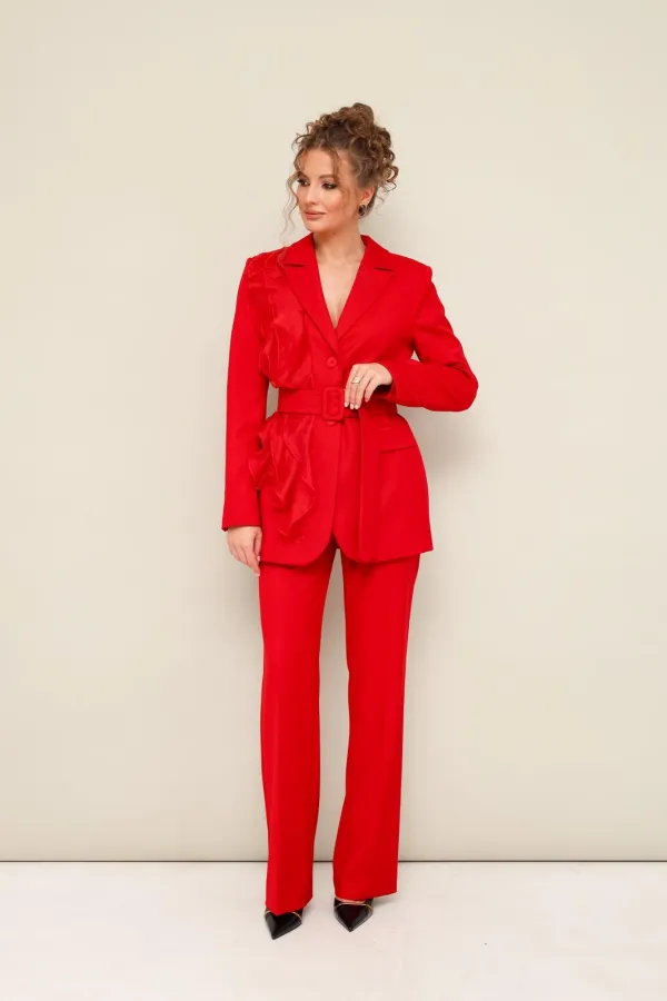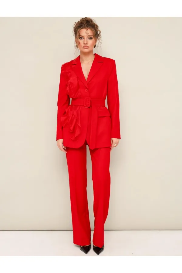 Комплект 2-предметный, состоящий из жакета и брюк, выполненный из костюмной ткани.